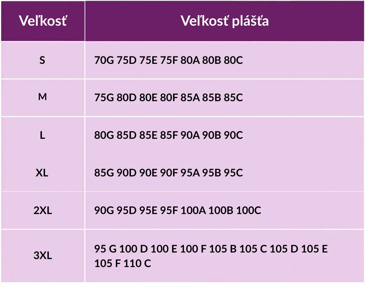 Ak váhate medzi dvoma veľkosťami, vyberte tú väčšiu. Podprsenky sú veľkosti podľa štandardov.